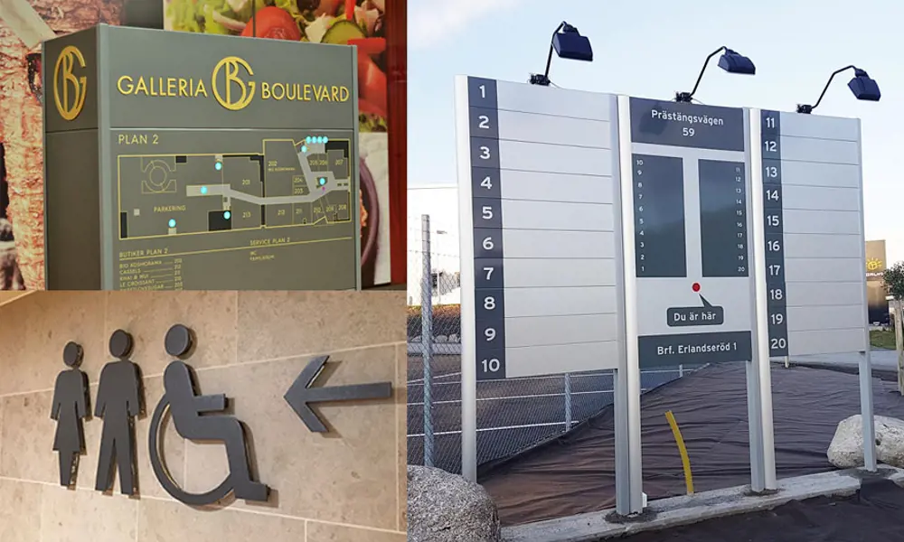 Med vårt breda sortiment av hänvisningsskyltar, både belysta och icke-belysta, har vi erfarenhet från olika miljöer såsom flygplatser, busstationer, shoppingcenter och stora kontorskomplex. Vi kan antingen följa era befintliga manualer eller hjälpa er att ta fram nya riktlinjer för skyltning. Från platsbesök och möten till design montering. Vi hjälper vi er hela vägen.