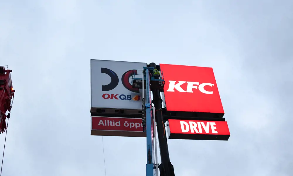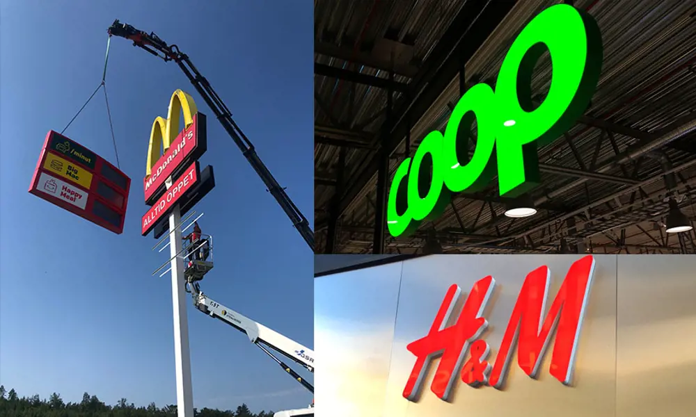 Underhåll är avgörande för att bevara en snygg och professionell image. Vi erbjuder service för alla typer av skyltar i hela Norden, inklusive byte, reparation, LED-omvandling med mera. För att effektivisera processen och skapa mervärde för våra kunder har vi våra egna serviceteam med välutbildad personal som rör sig över hela Norden varje vecka.